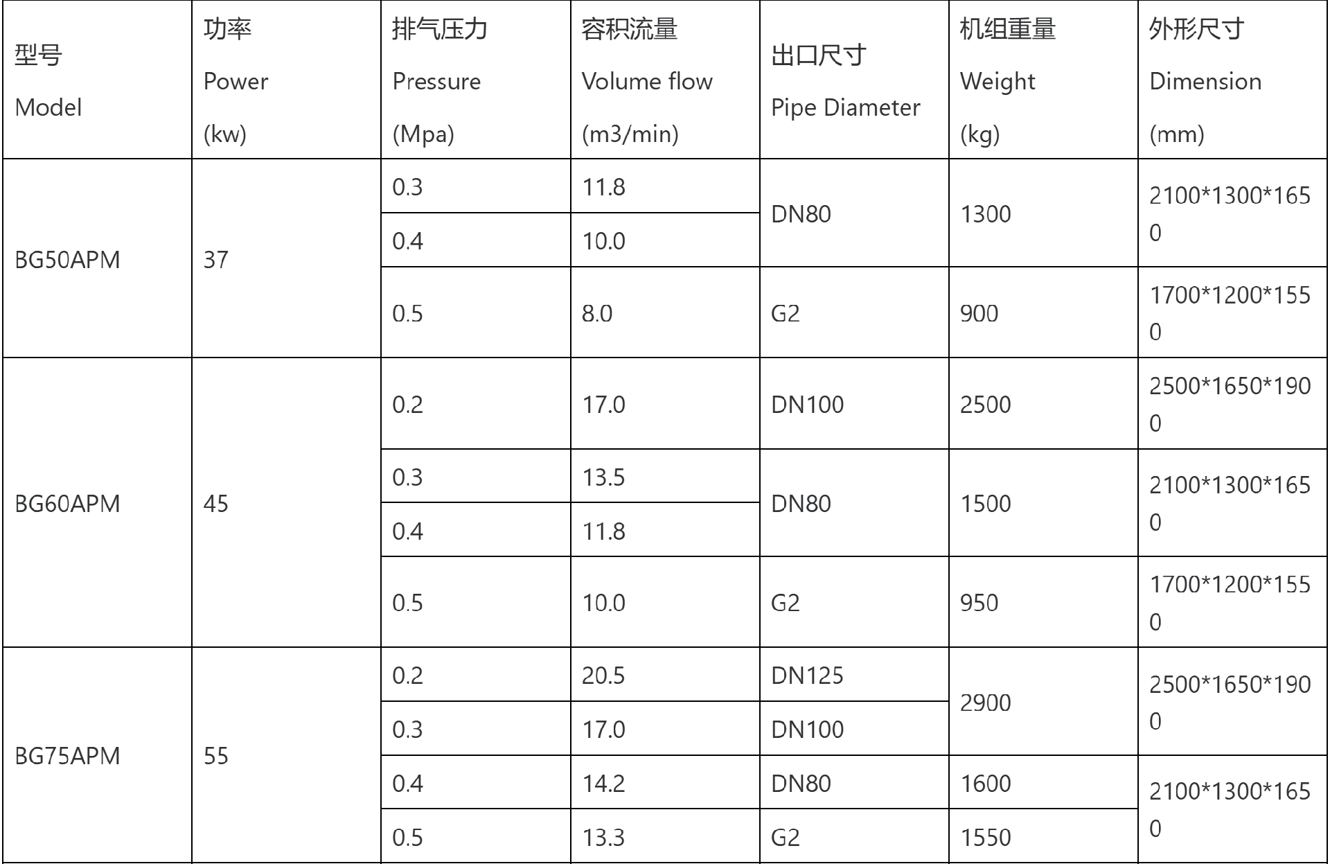 产品特点:采用大转子、低转速,保证机器高性能;
